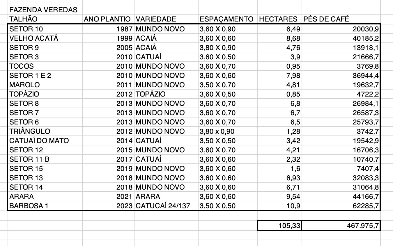 106 hectares em café (aprox. 460.000 pés)